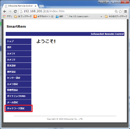 SmartRemに接続し、「ネットワーク設定」メニューを開きます。