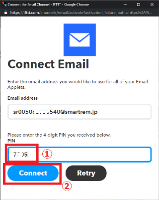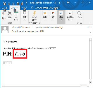 IFTTTは、SmartRemの送信アドレスが、IFTTT登録者に管理されたものであるかを確認する為に確認メールをsr***********@smartrem.jpに
