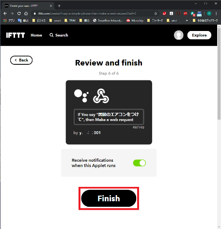 3.BにIFTTTのWhat do you want the Assistant to say in responseで登録したものである場合は正常です。機器が動作するはずです。