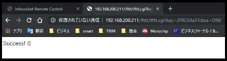 2.@のURLをクリックします。ブラウザが開き Sucess! 0 が表示され、機器がONになれば正常です。
