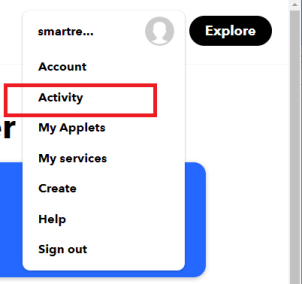 1.IFTTTにSign inし、人型アイコンをクリックし、Activityを選ぶ