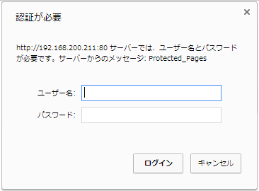 ルーターのユーザー名、パスワード入力画面が表示されます。