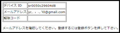 「登録解除リクエスト送信」ボタンをクリックすると、このSmartRemの販売者にデバイスIDと入力したメールアドレスが通知されます。SmartRem販売者は、「解除コード」を入力メールアドレスに送ります。(または、SmartRem登録情報を初期化しメールアドレスに連絡します) |
