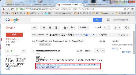 受信メールにmaster@smartrem.jpからのものがあるかを確認します。
