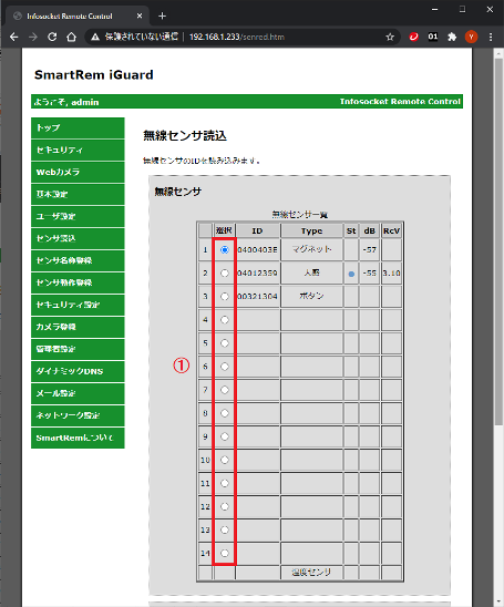 センサ読込画面でSmartRem iGuardにセンサを登録します。