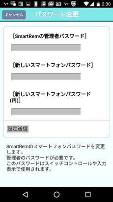 スマートフォン画面用パスワードは、パソコン画面から変更することはできません。 |