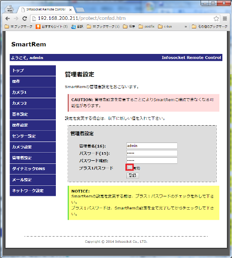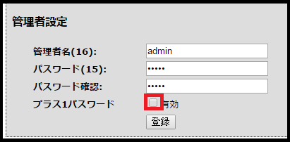 各種設定を変更する前にはプラス1パスワードのチェックを外し、設定変更が完了した後でチェックを戻して下さい。