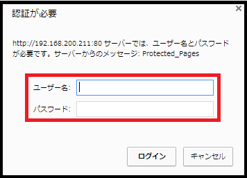 この時に認証が必要なページを表示する時に現れる認証画面には
