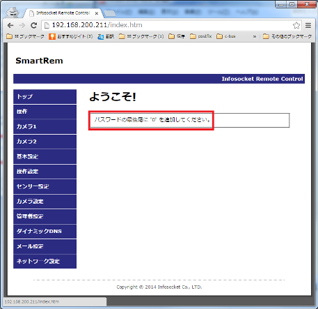 パスワード -> 登録したパスワード+TOP画面に表示される数字