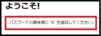 パスワードの最後尾に'*'を追加して下さい。の表示が現れます。